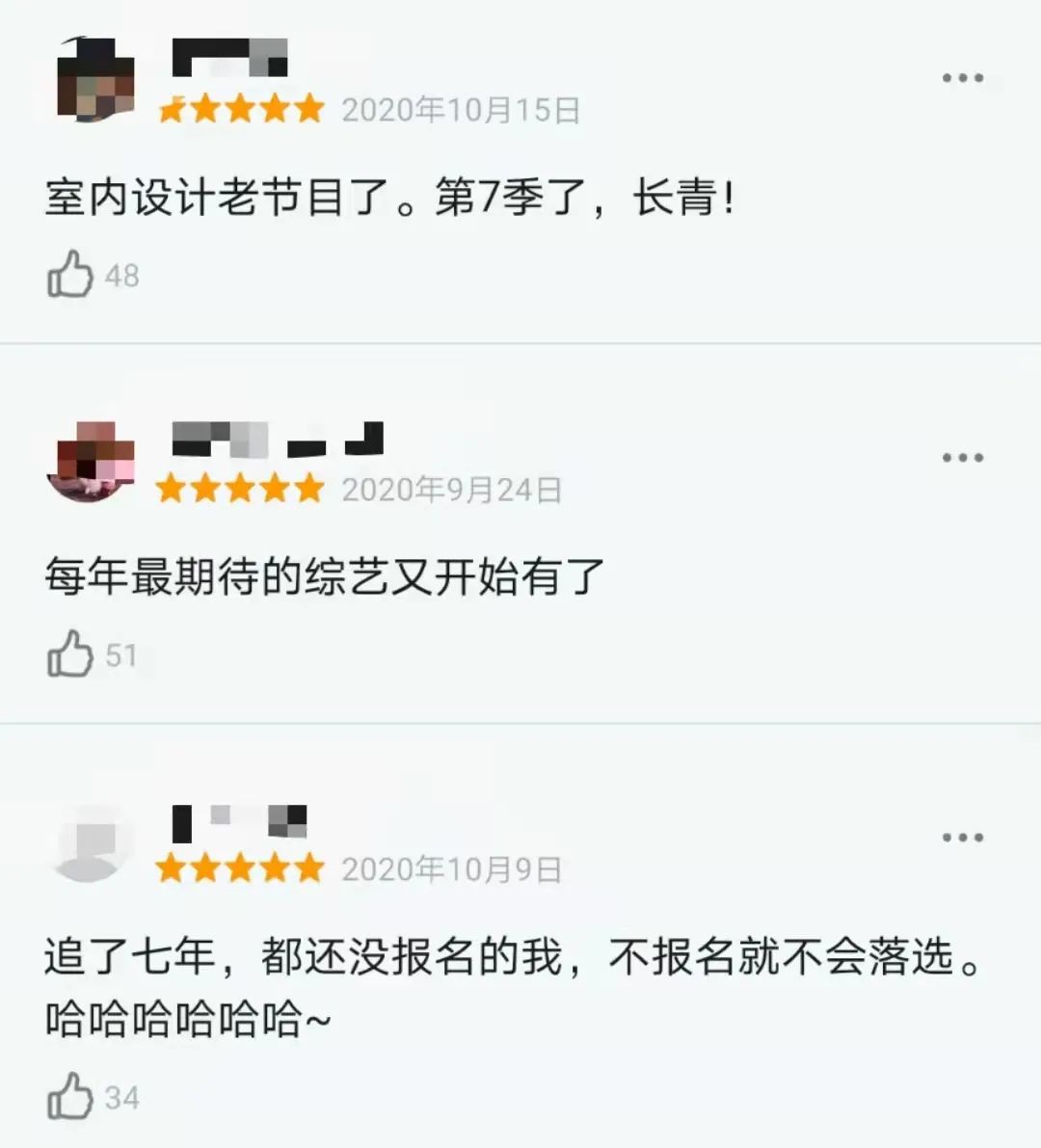 在第7季和第8季的豆瓣短评中,不难看到很多翘首期盼的身影:“室内设计老节目了。第七季了,长青!”,亦或是“每年最期待的综艺又开始了”,还有“追了七年,都还没有报名的我,不报名就不会落选”这样追了七年的忠实观众。