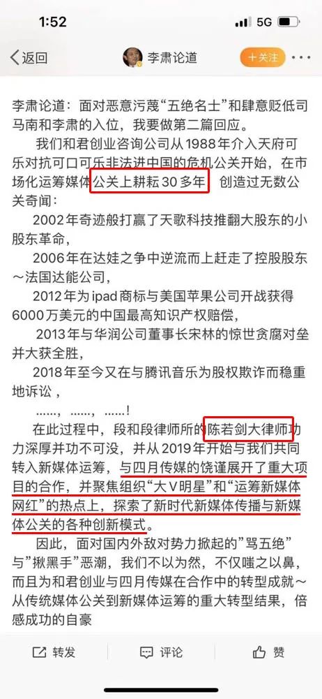 注:李肃、四月传媒和陈若剑律师(后文将有提到)探索新媒体公关
