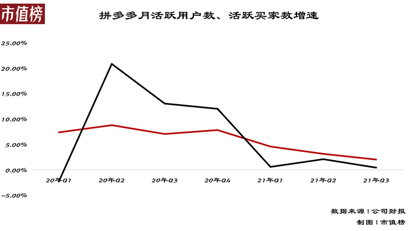 但我们也看到,拼多多过去依靠下沉市场这一路径差异打造出来的优势,正在被逐渐抹平——不论收入,还是用户增长,拼多多都在放缓。