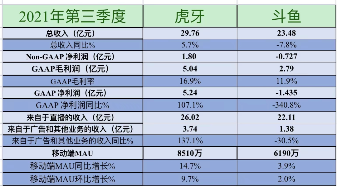 斗鱼Q3财报的亮点,是移动端MAU创历史新高达到6190万,较2020年同期的5960万增长3.9%。但比起虎牙8150万平均移动端MAU、14.7%的同比增幅仍是略逊一筹。