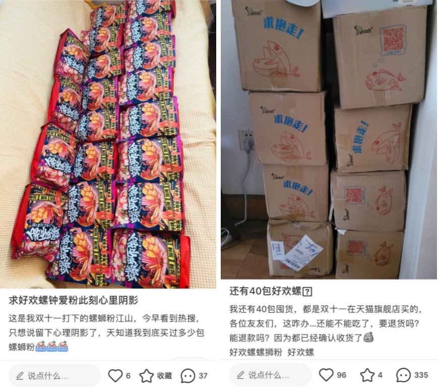 请输入图说网友晒出的“好欢螺”螺蛳粉囤货 来源 / 小红书