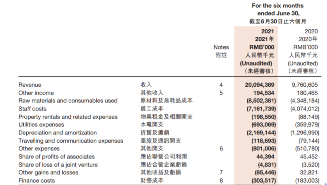 2021上半年海底捞财务情况,图/海底捞财报