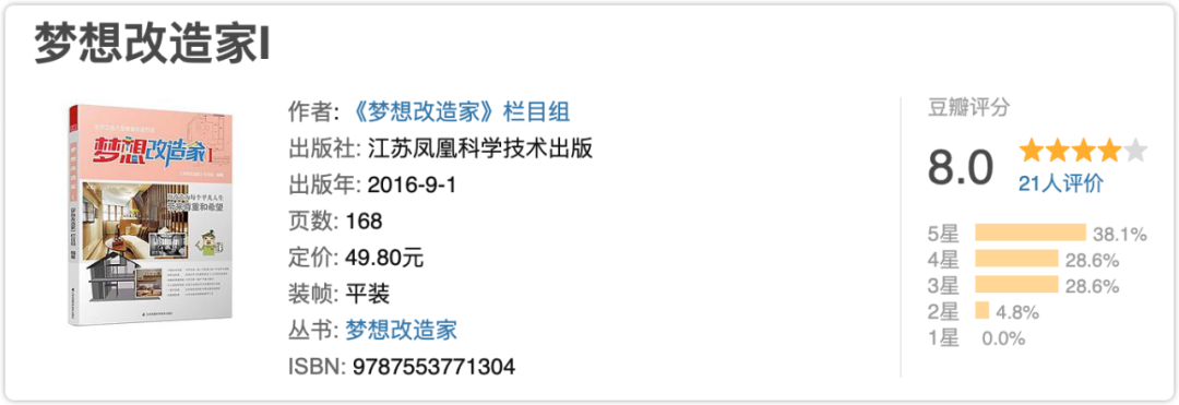2016年秋天,《梦想改造家》栏目组曾策划出版了一套图书,收录了节目中的内容,为大众提供灵感。面对难题的挑战欲和贴近生活的参与感曾经是节目热度的关键所在。