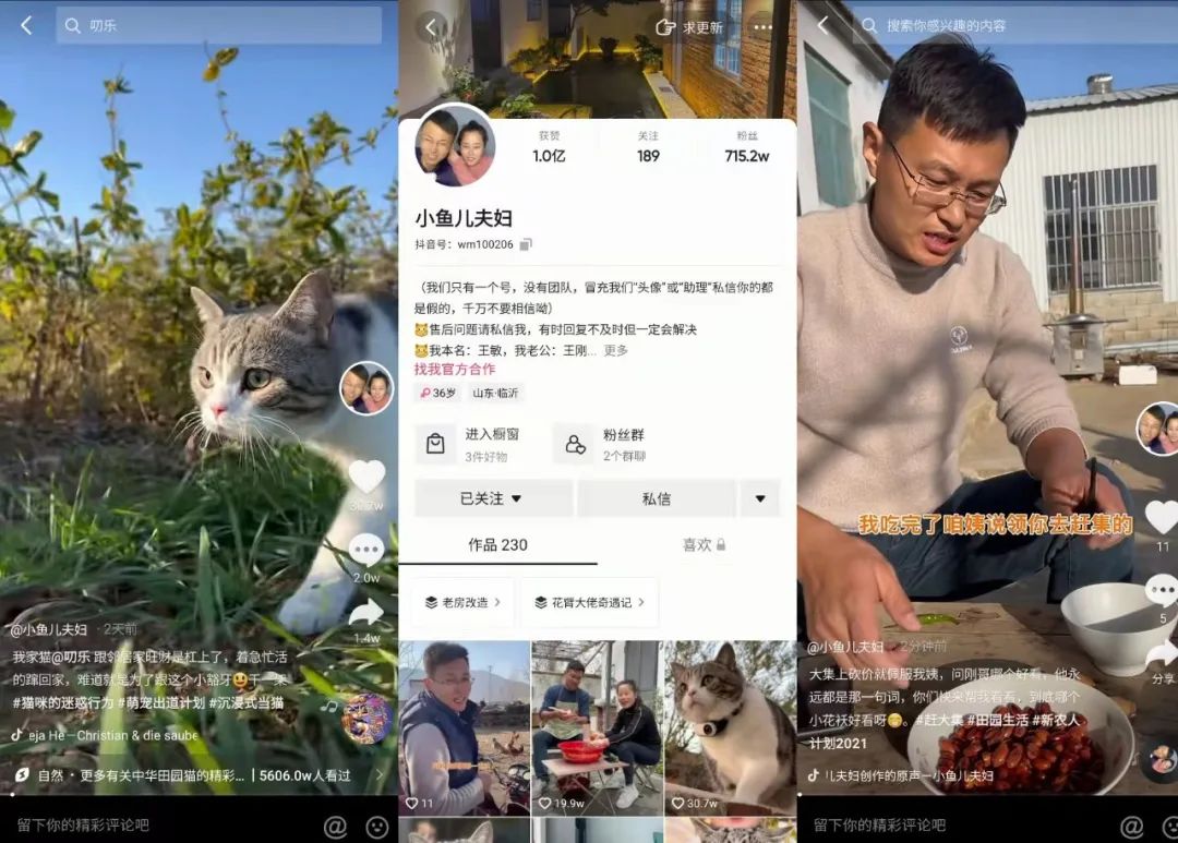 还有像小鱼儿夫妇,走的是夫妻二人搭档,丈夫作为主角出境,妻子手持拍摄,并作为旁白进行讲解的方式。这种拍摄逻辑,像是妻子拍摄记录生活的Vlog,观众可以通过妻子视角,进入到他们的生活。