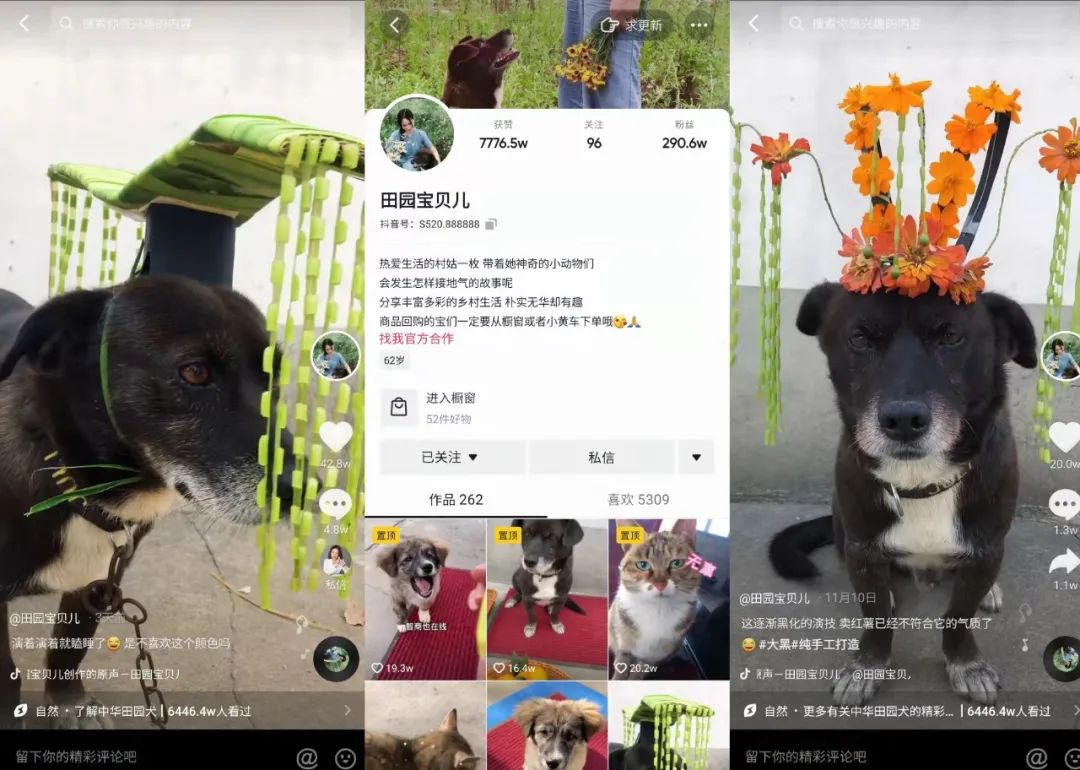 其中像田园宝贝儿,简介中,她称自己为“热爱生活的村姑一枚,带着她神奇的小动物”。从2018年6月更新开始,到如今这个账号已经上传了262个作品,收获了7774万赞和290.6W粉丝。