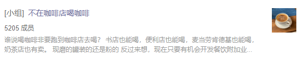 今年4月,豆瓣上成立了“不在咖啡店喝咖啡”小组,目前已经聚集了5000多人。在小组内,他们一边分享“如何正确喝咖啡”,一边互相鼓励把“反咖啡文化消费”进行到底。