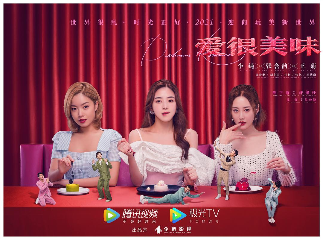 由陈正道、许肇任执导,李纯、张含韵、王菊领衔主演,《爱很美味》的制作团队并不算“出彩”。虽然陈正道导演是电影咖“下凡”,之前也曾拍摄过口碑热度不错的黑马网剧《结爱·千岁大人的初恋》,但之于大众市场而言,剧中邀请的几位主演基本已决定了该剧的项目定级。传言,该剧在剧本筹备、平台定级初期,并不受到平台重视。这也是该剧播出之前毫无关注,甚至因“土土”的剧名和拉垮的片头,被市场误认为“又一部甜宠剧”。