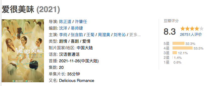 演员与角色的相互成就,往往是一部作品流露出“爆款”迹象的一个重要衡量指标。从这点来看,《爱很美味》在市场中的话题度、口碑佳绩,已在加速发酵。