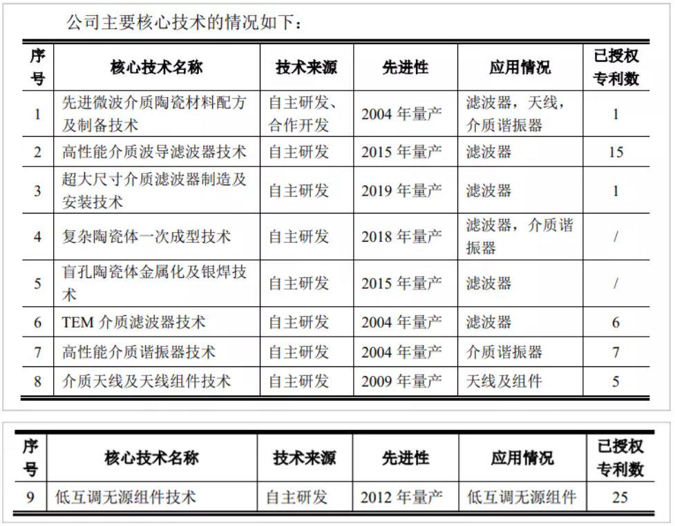 根据招股书披露,灿勤在微波介质陶瓷材料和元器件领域具备长期的技术积累,掌握了先进微波介质陶瓷材料配方及制备、高性能介质波导滤波器、超大尺寸介质滤波器的制造及安装、复杂陶瓷体一次成型技术、TEM介质滤波器技术等九项核心技术,实现了从陶瓷粉体制备到元器件成品出厂的生产流程全覆盖,技术能力在电子陶瓷行业内处于领先的位置。