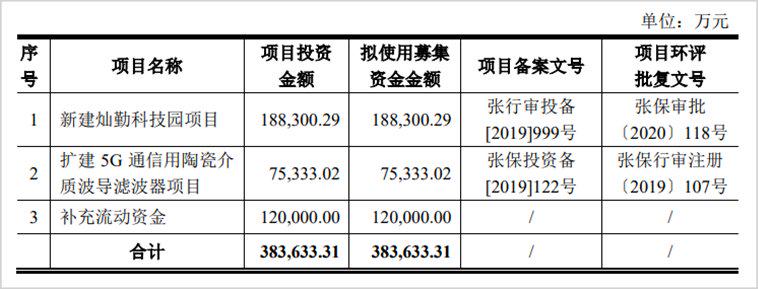 公司此次在科创板IPO,募集资金将主要投向新建灿勤科技园项目、扩建5G通信用陶瓷介质波导滤波器项目等三大领域。