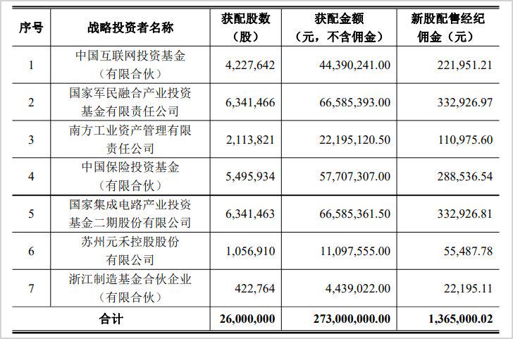 8家机构中,有5家属于国家队,阵容非常强大,总计配售股份数占到了总发行数的30%。