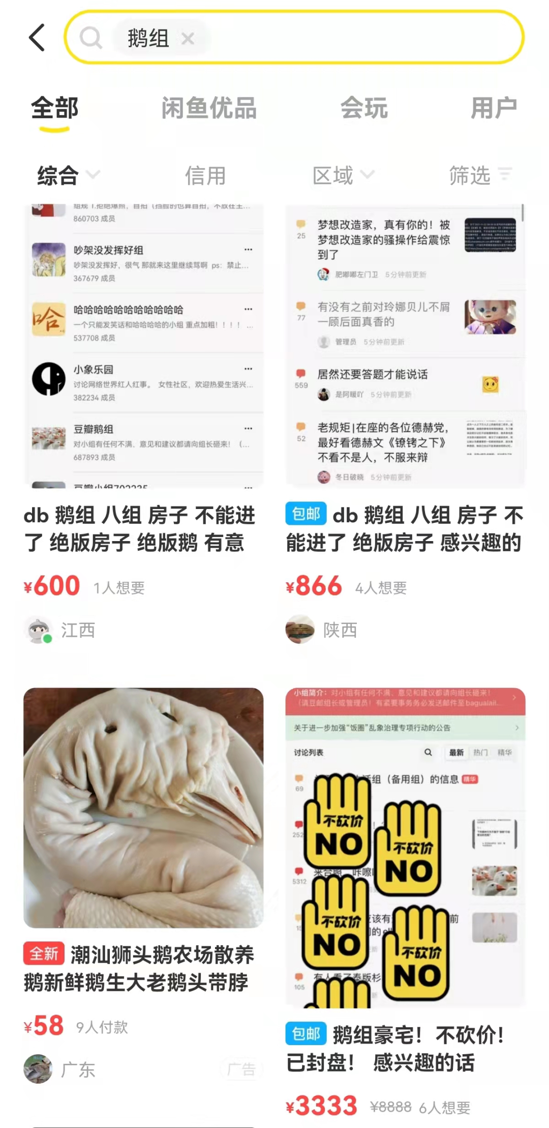 八组的影响力巨大,已经是不争的事实。与此同时,进组也越发困难。在闲鱼上,鹅组的“房子”甚至可卖到上千元。