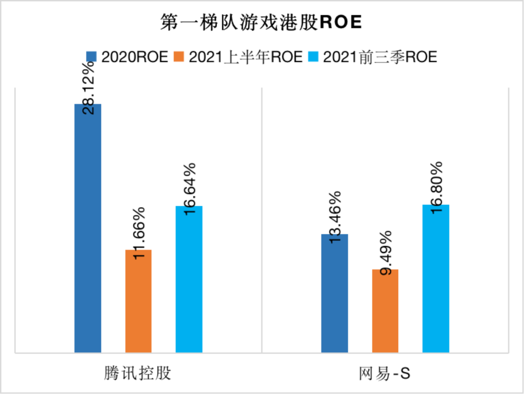 中手游与网龙ROE相近,前者2021上半年上新《斗罗大陆-斗神再临》及《航海王热血航线》,后者旗舰IP《魔域》继续保持强劲的表现,收入同比增长14.1%,《魔域口袋版》和《魔域手游》的合计月活跃用户数及日活跃用户数分别增长了25.7%和20.1%。