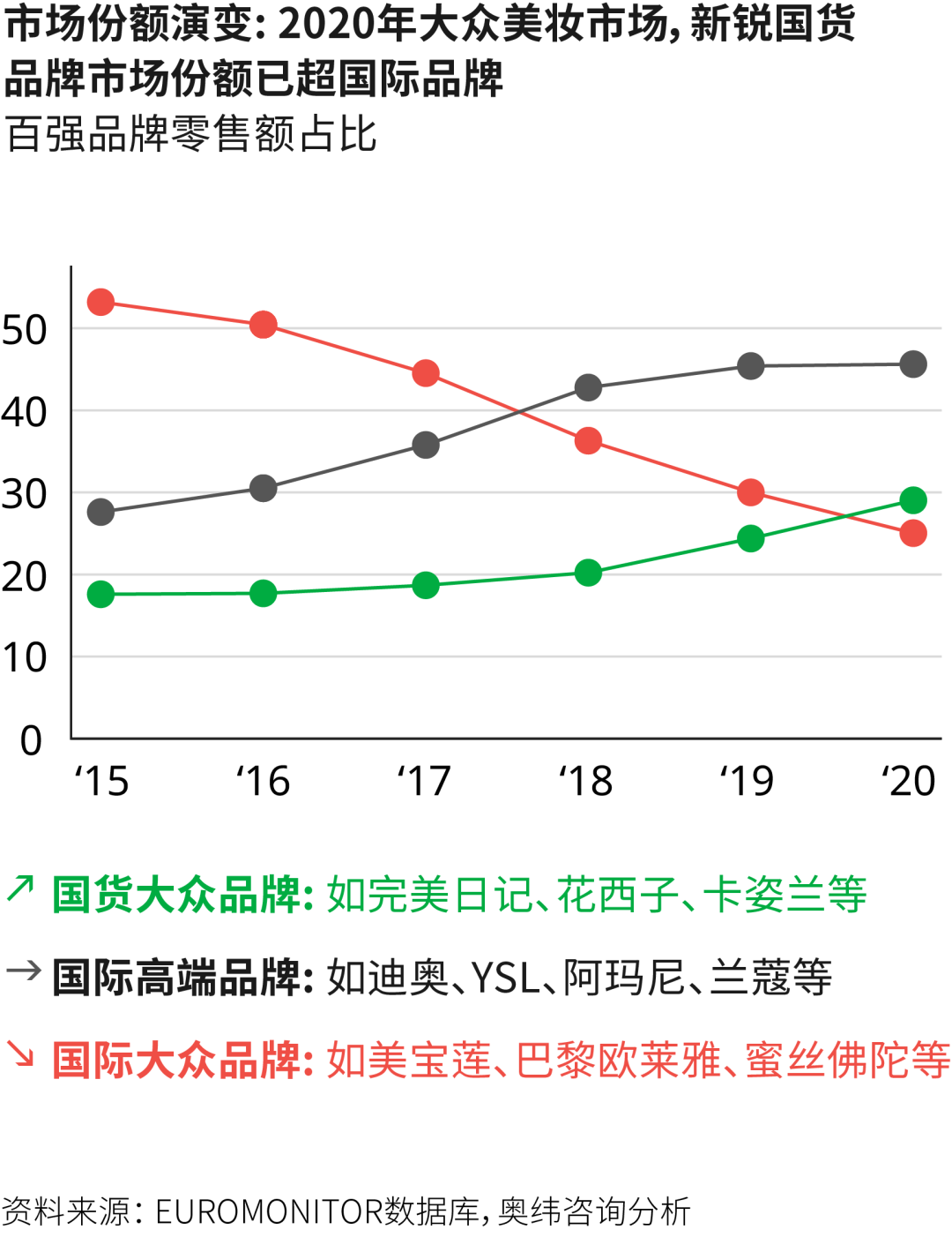 某种程度上,国货美妆在原料、配方等层面的相对薄弱,除去本土化妆品牌起步较晚、根基不深的原因,也有如今美妆品牌内卷,市场端变化太快的影响。本土美妆品牌之前由于欧美品牌的大举进入一度被合并、收购,或破产关门,如今好不容易接着社交媒体乘风而起,多多少少会对市场妥协,从而落入包装、概念、营销的爆红陷阱。