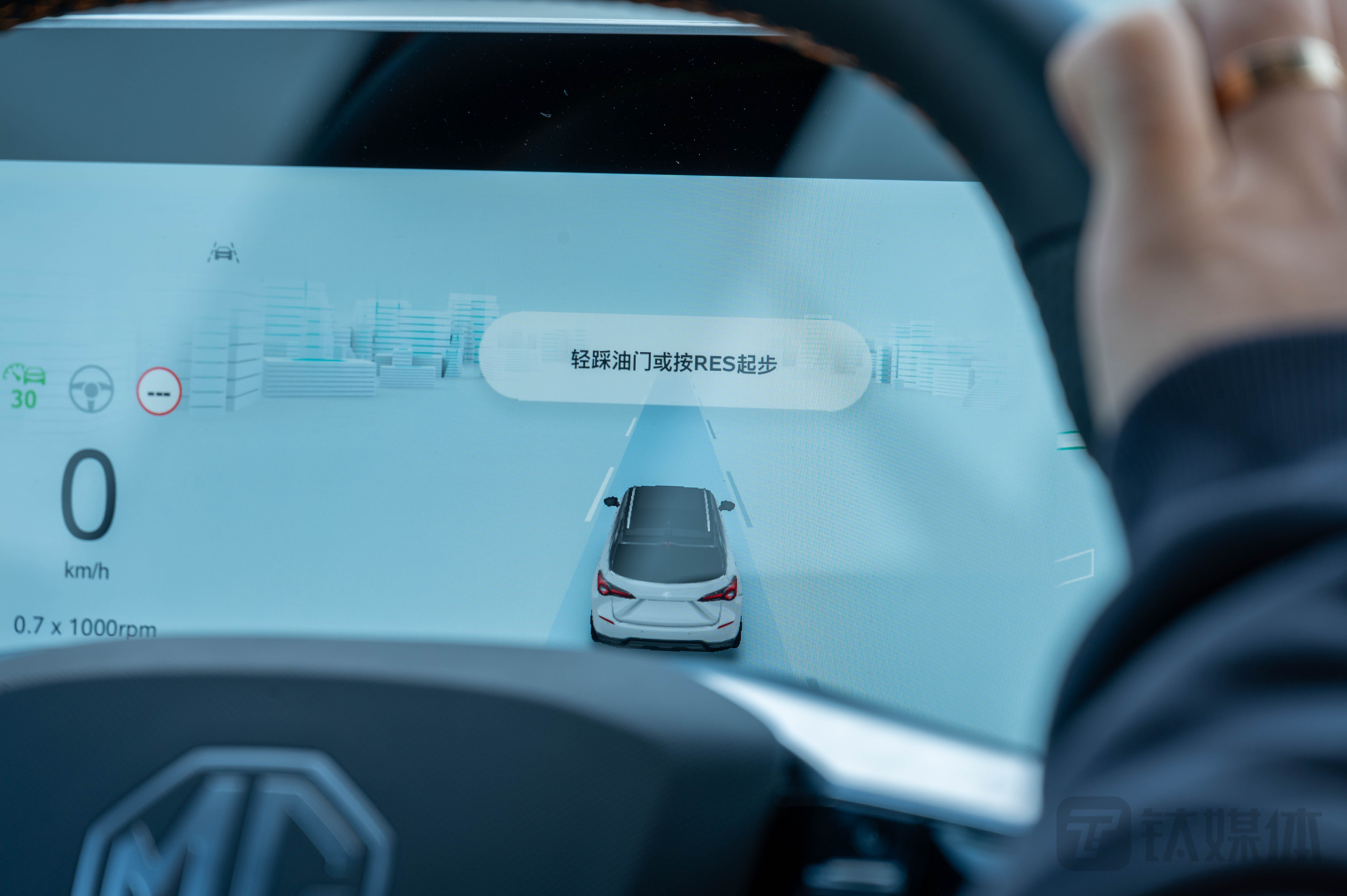 实际的体验中,MG ONE对于前车的识别与捕捉速度是比较快的,而在红绿灯启停的过程中,相较于司机而言,还是有片刻的迟滞的,这个过程首先需要驾驶员确认,然后车辆会缓缓启动,体验比较自然顺畅,没有突兀感。