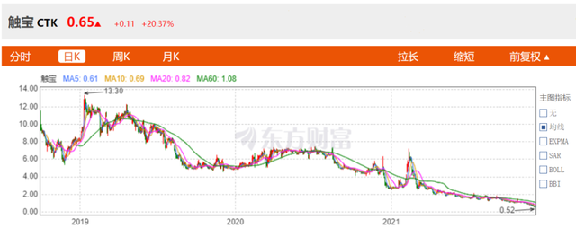 总体上,触宝自上市起完整的经历了从波峰到波谷动荡。