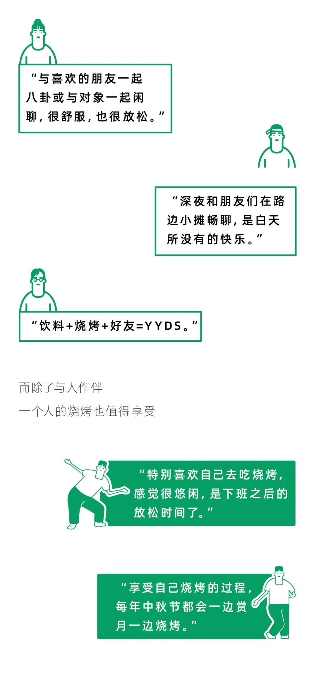 “因为吃烧烤可以放下一天工作或者学习的疲惫,好好享受吃烧烤的快乐。”