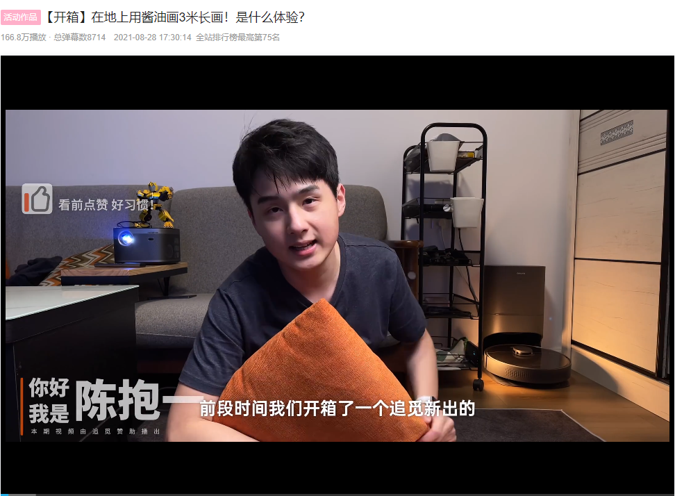 如家电品牌追觅,是典型的圈层文化&种草营销的组合。UP主投放,横跨数码科技、萌宠、美食,既有提振品牌印象的创意内容,也有直达卖点的种草视频;投放之后,通过B站的起飞产品(内容加热工具,即商业流量推流)进行内容扩散;最后通过播放器下端的购买预约链接倒流,形成一个完整的营销链路。![]()