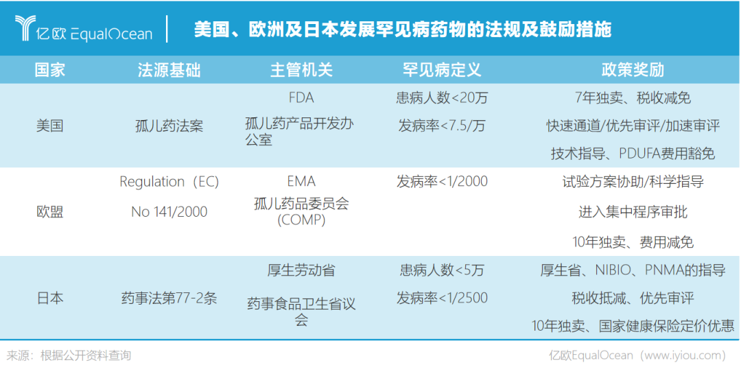 紧随而来的问题是,成功商业化的药品会不会遭遇其他仿制药的围攻?为保护药企权益,自1983年美国颁发孤儿药法案后,孤儿药获批可享受为期7年的市场独占期,欧盟、日本、中国台湾孤儿药的市场独家经营权均为10年。但我国暂没有相关法律规定孤儿药独家经营权及财政激励措施。