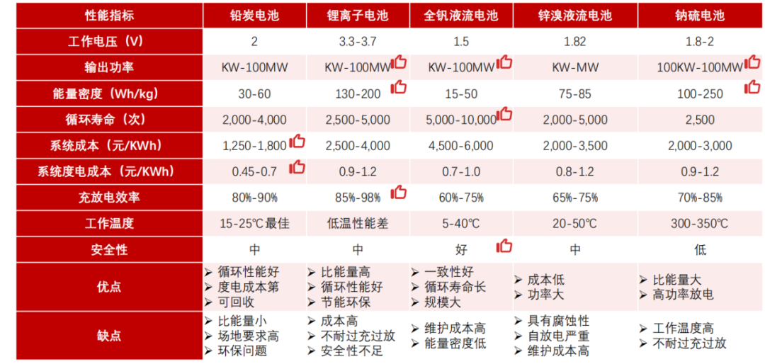 其他电池方面,铅炭电池不环保,锂电池存在安全隐患,锌溴液流电池又存在较强的自放电现象,钠硫电池工作温度过高,显然都与储能站的要求并不匹配。