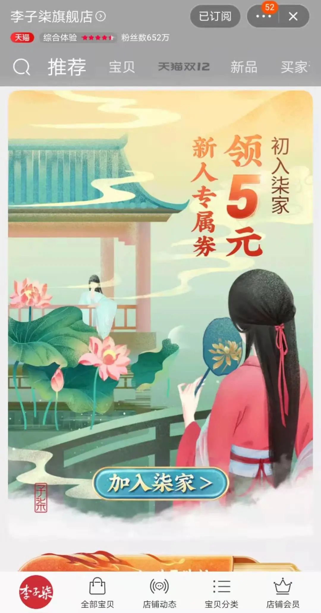 李子柒淘宝店有652万粉丝