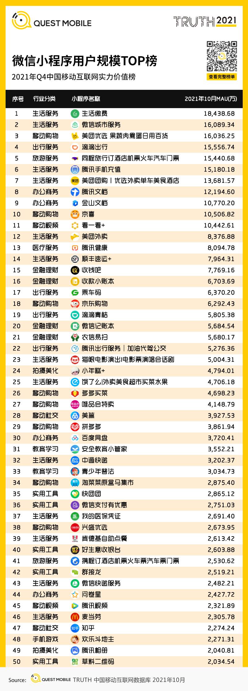 6、小程序流量加持下,帮助应用实现用户规模提升,其中移动购物、生活服务、办公商务等领域更多应用收获小程序流量,实现亿量级突破