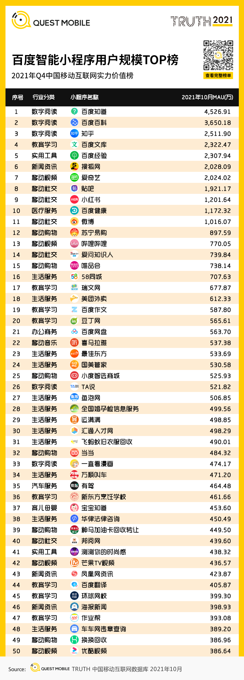 1、经过多年发展,小程序已逐渐成熟,月活跃用户规模百万级以上小程序数量稳步提升