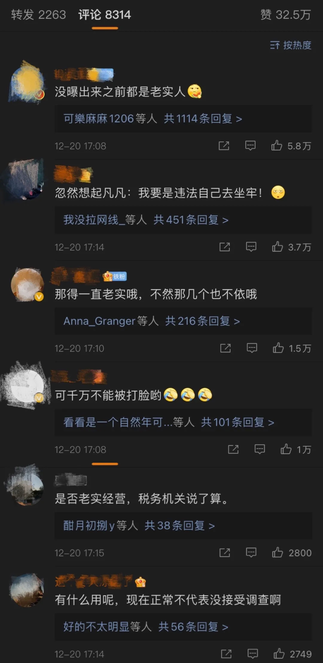 所以我们看到,话题#薇娅偷逃税被追缴并处罚款13.41亿元# #薇娅的违法事实有哪些#被发起后火速登上微博热搜榜TOP1、TOP2,不过2小时阅读量分别达到10.3亿、1.3亿,而在这两个词条下,我们看不到一条带有“同情”意味的评论。