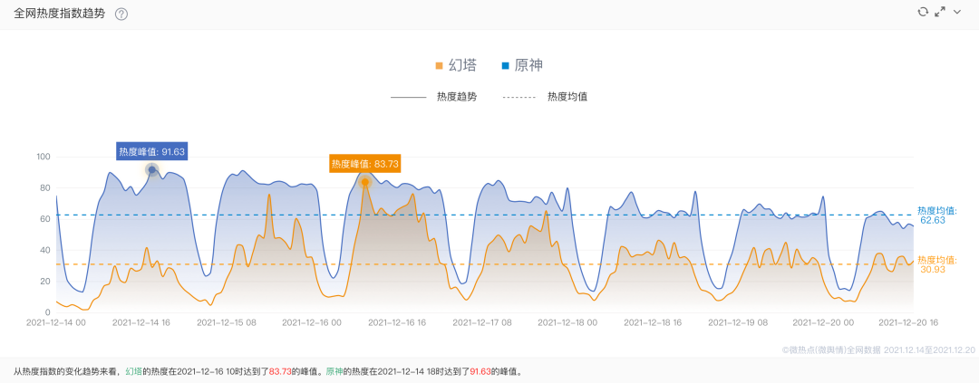 《幻塔》、《原神》热度对比 数据来源:微热度