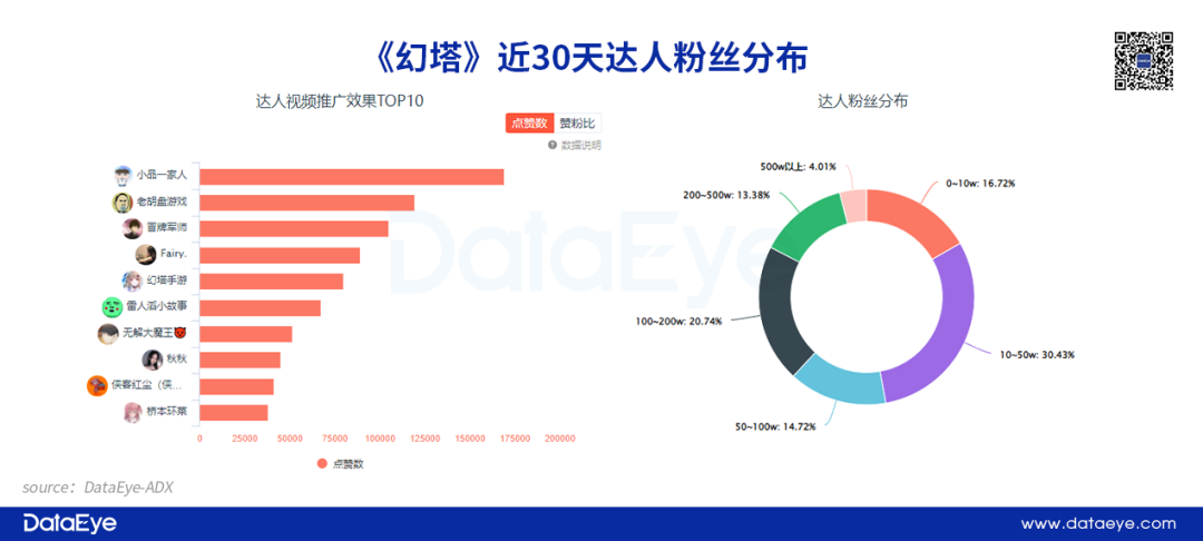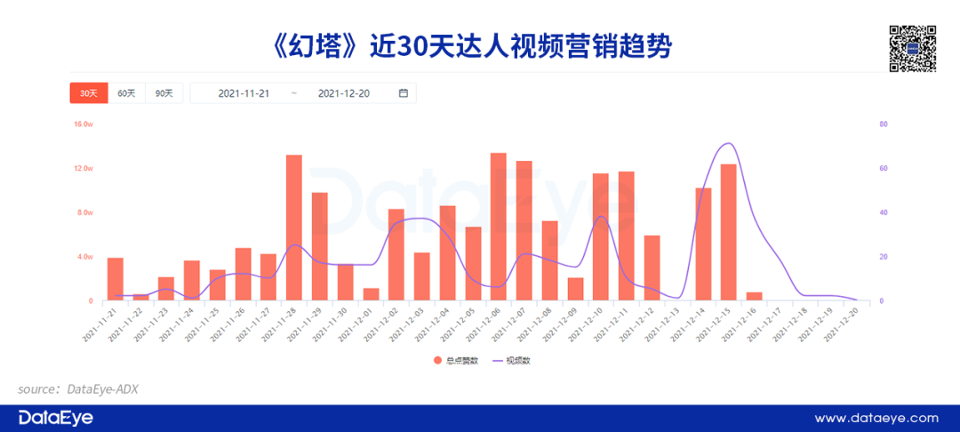 从效果广告投放来看,两款产品总体投放力度并不大,《原神》无需多言,而《幻塔》也仅在游戏上线前两天提高投放量,扩大游戏传播声量。因此在传播过程中,达人营销是这两款游戏的营销侧非常关键的一步。