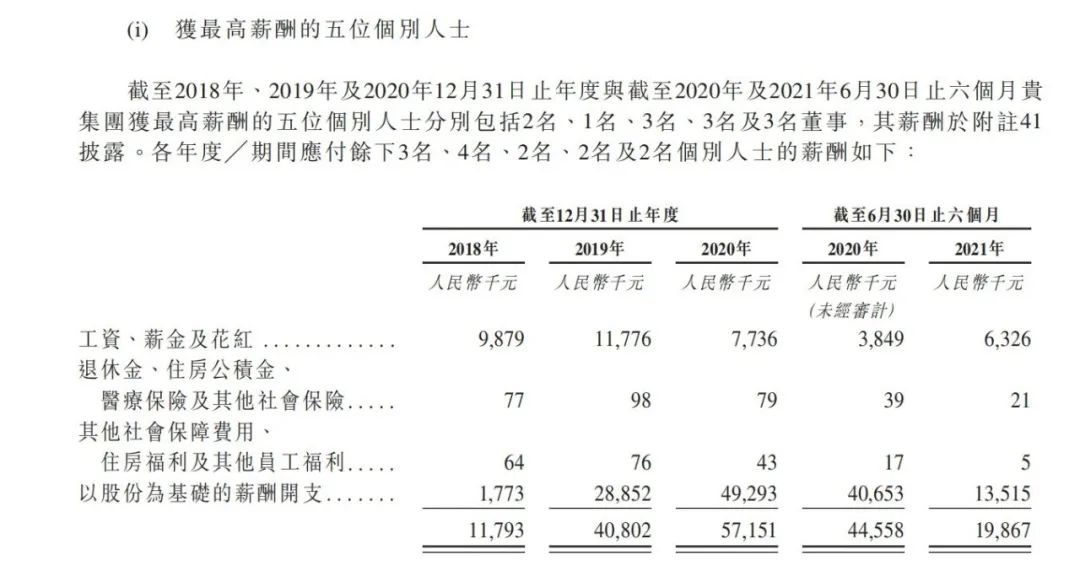 在商汤科技的招股书上,对高管薪酬确有明确披露。2021年上半年,3名董事薪酬总计11.92亿,而薪酬最高的五名高管,其薪酬总和更是达到12.12亿元。