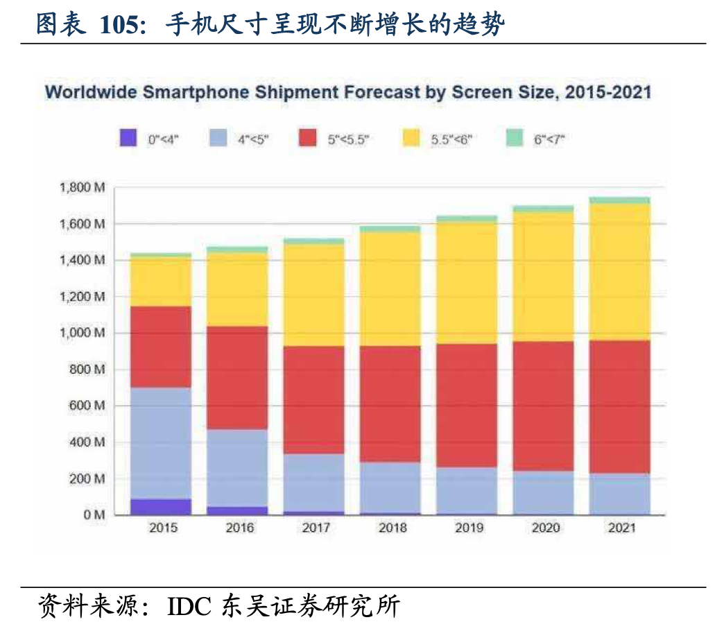 很快,一众手机厂商加速追赶大屏潮流。东吴证券在一份研报中指出,2015年5.5英寸屏幕以上的手机占比不足20%,如今这个占比已经接近一半。