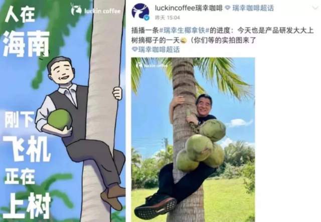 今年以来,瑞幸给外界感受最大的是,产品和营销花样也越来越年轻化。这得益于瑞幸重新调整员工薪酬、重新设计晋升通道、把资源向年轻人大幅倾斜。一个有趣的现象是,今年生椰拿铁全线售磬,瑞幸借机玩起了知乎梗——“谢邀,产品总监人在海南,刚下飞机,正在上树。”并配了一张产品总监上树摘椰子的图片。