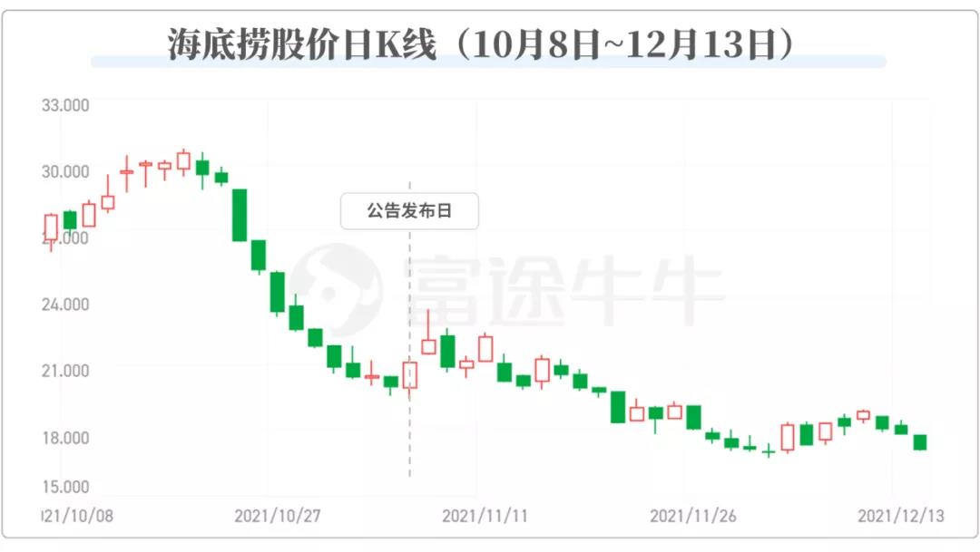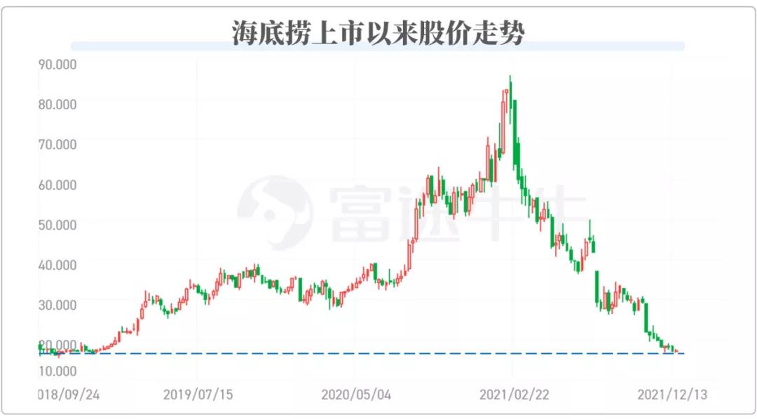 做出这一决定并不轻松。在此之前,海底捞的股价已经从年初最高的83.5港元/股持续下跌到21.4港元/股,跌幅近75%。在这一背景下,海底捞选择在周五休市后公布,显然是想尽量降低这一消息的带来的负面影响,但依然不可避免地引发了大家的热议。