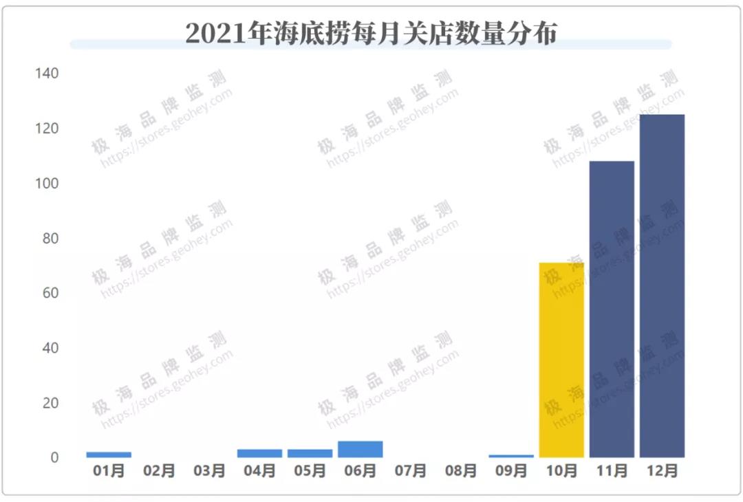 10月份,海底捞关店数量突然猛增,仅仅一个月的时间就关掉了73家门店,其中7成以上的关店来自2020年6月开始的逆市抄底计划,也就是说,这些门店大部分存续时间还不满一年。
