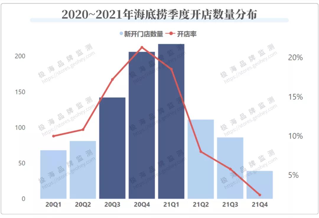 于是从2020年6月开始,海底捞的每月新开门店数量在上新台阶,三四季度合计新开门店近370家,占全年开店总数的近7成。