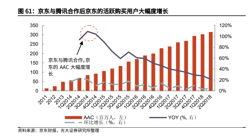 但也有一种观点认为,京东实际上并没有用好腾讯的社交流量。比如2018年以后,它的活跃用户数量开始明显放缓。