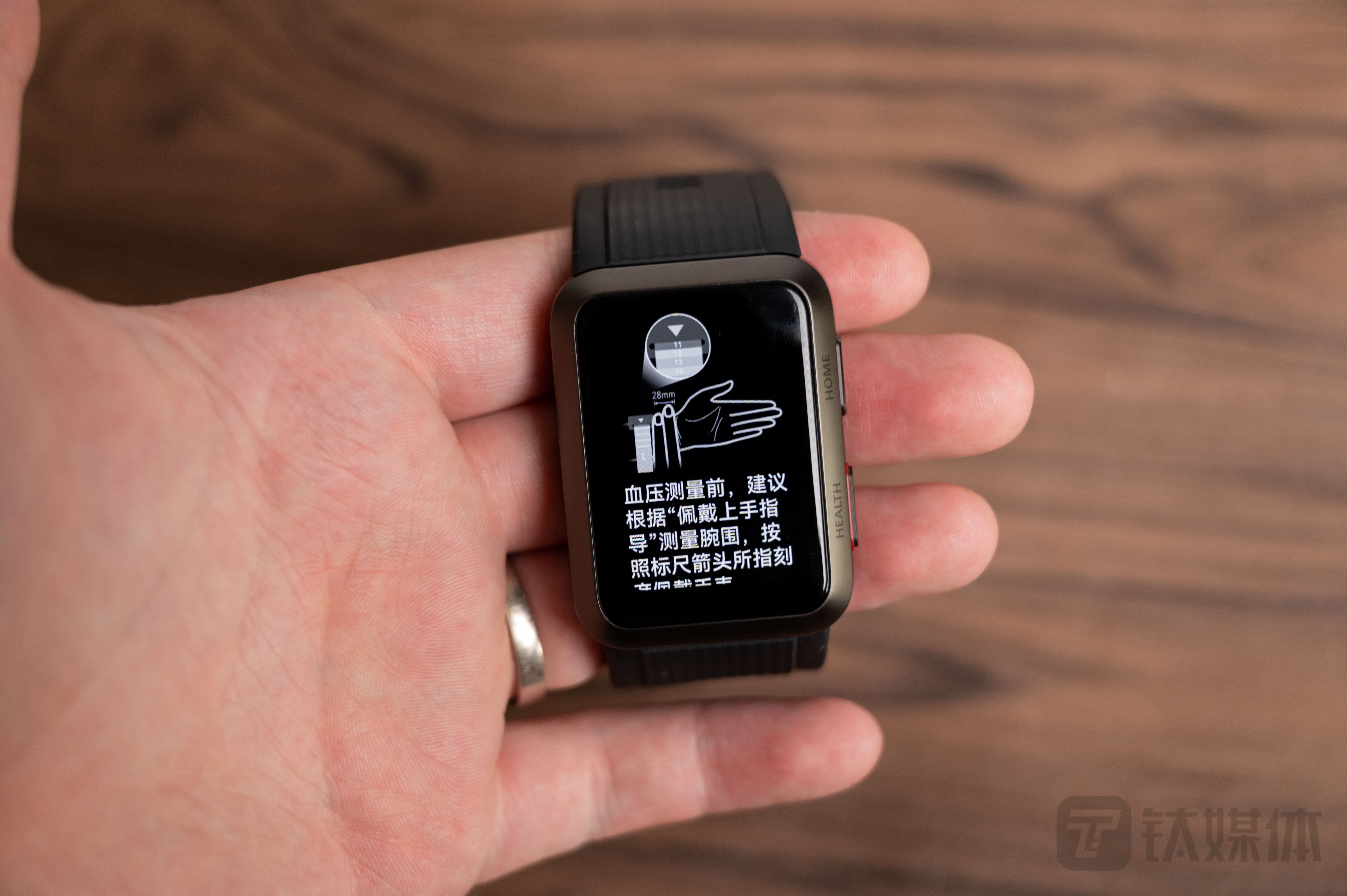 同时,也首次引入了微型气泵、气囊等结构,将血压测量技术融入手表,通过集成高精度压力传感器、压力反馈式控制电路及低流阻气路,可以实现误差在±3 mmHg 以内的压力测量系统。并且与传统的血压测量仪相比,它的佩戴与普通的智能手表完全一致,只需要选择合适的佩戴松紧度,就可以轻松完成测量。
