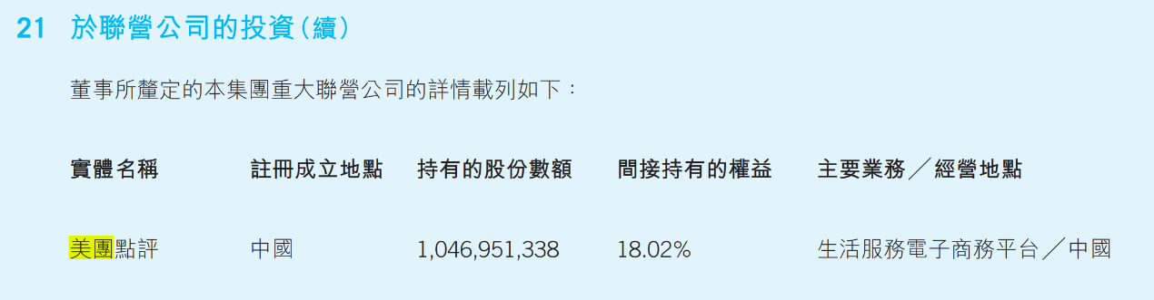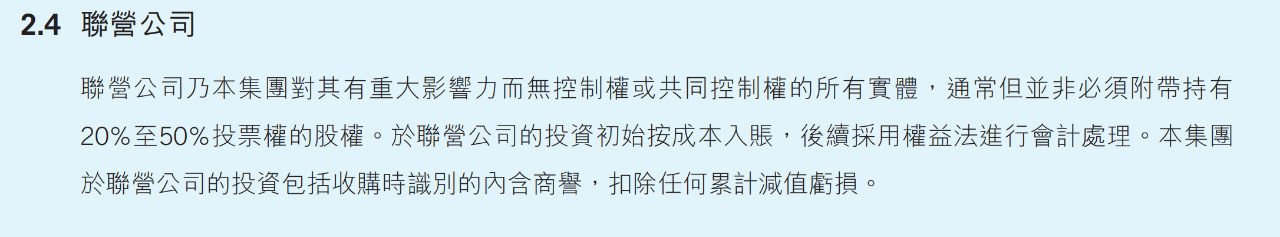 腾讯对于京东和美团的投资属于“联营公司”。何为联营公司?腾讯的会计政策解释如下: