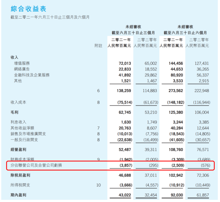 腾讯每年从联营公司中分得的盈利/亏损,则是这笔成本的抵扣或增加。如果联营公司盈利,那么腾讯从联营公司获得相应的利润。那么,这利润就等于抵扣,减少了腾讯的投资成本。但如果上市公司亏损,则腾讯就得承担相应份额的亏损。这等于增加了腾讯的投资成本。由此看来,“分占联营公司及合营公司盈利/亏损”科目其实是腾讯与联营公司业务合作的对价。
