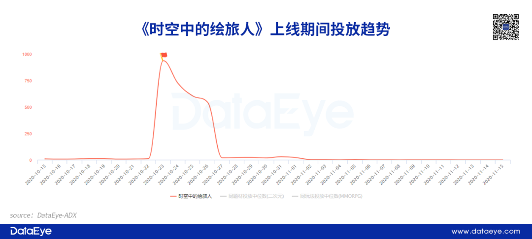 关键词1:稳定。参考DataEye-ADX投放数据监测显示,米哈游的《未定事件簿》及网易的《时空中的绘旅人》,两者在上线当日素材投放数不过千组。反映出头部女性向产品在投放侧整体力度不算太大。