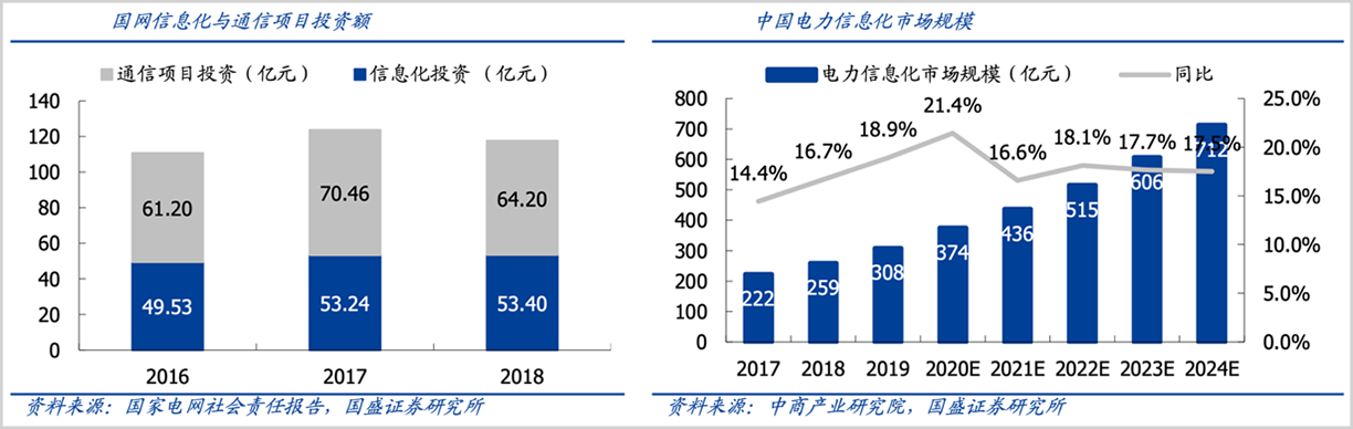 据中商产业研究院预测,2022、2024年全国电力信息化市场总收入将分别达到515亿元、712亿元,市场增速要快于电网总投资增长。