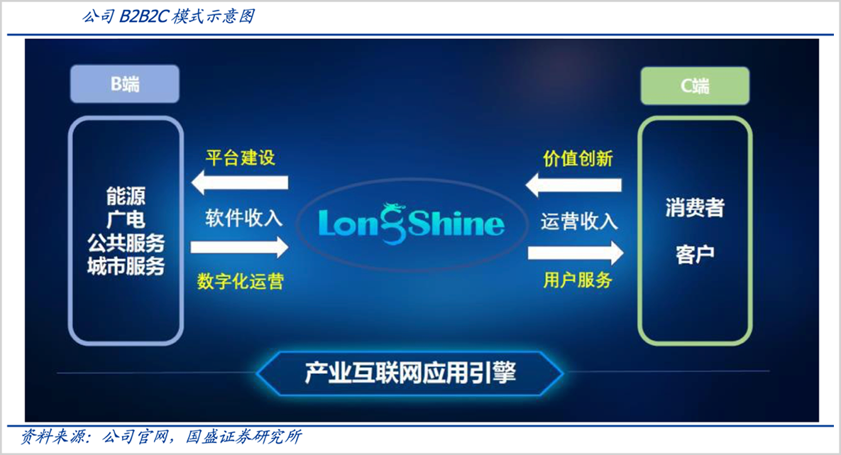 投身电网数字化的朗新科技(300682.SZ)通过自建能源互联网服务平台,从传统的2B转型为B2B2C模式,发挥B端资源优势,为C端创新使用场景,已经涉足能源缴费、汽车充电、能效管理等领域。