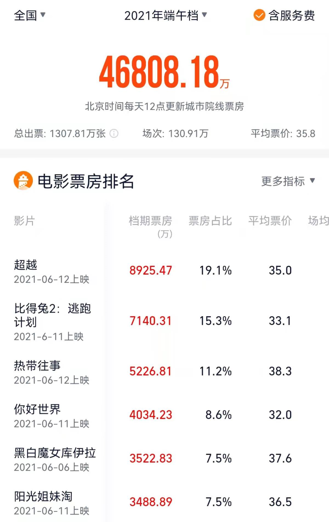 去年端午档