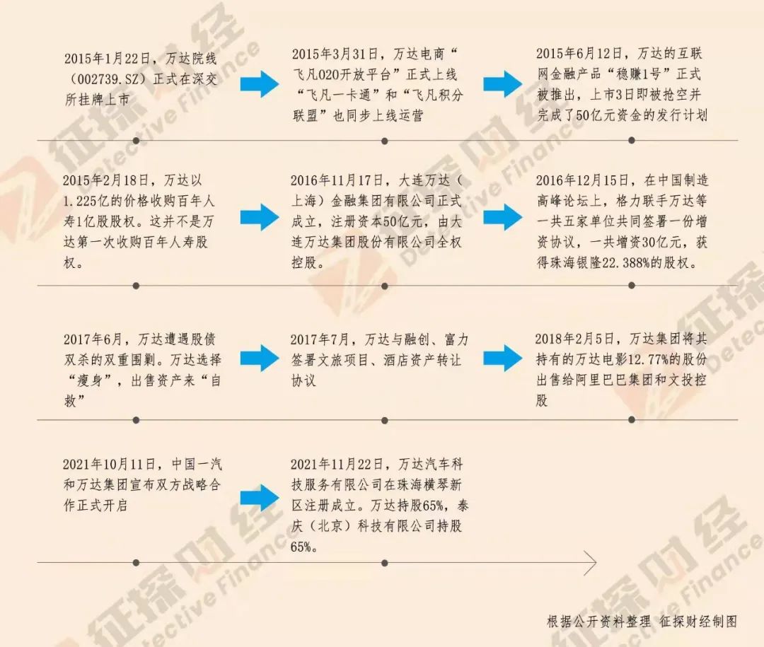 然而,心中有无数个小目标,地产疯狂多元化的带头大哥,会轻易躺平吗?时间终究给出了答案。经过接近5年的甩卖,重整旗鼓的万达也迈入汽车业。2021年11月22日,万达汽车科技服务有限公司在珠海横琴新区注册成立。