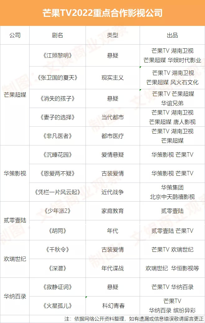 借助两篇文章的梳理,我们已经可以较清晰的窥见爱腾优芒哔2022的剧综布局,至于这场新战事会如何发展?中间又会产生多少惊喜与失落?一起共同观望吧。