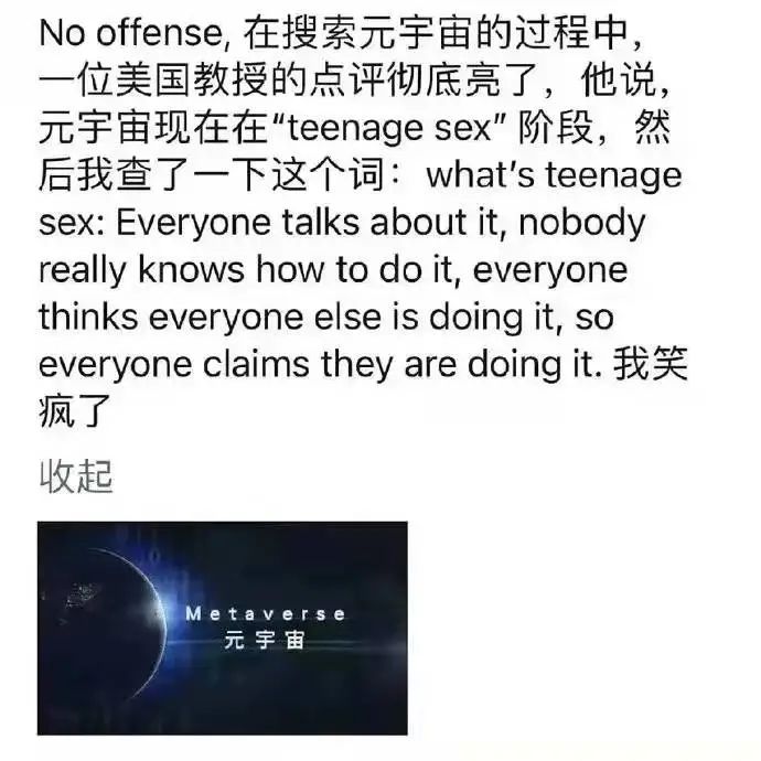 一种颇为嘲弄的说法这么理解Metaverse