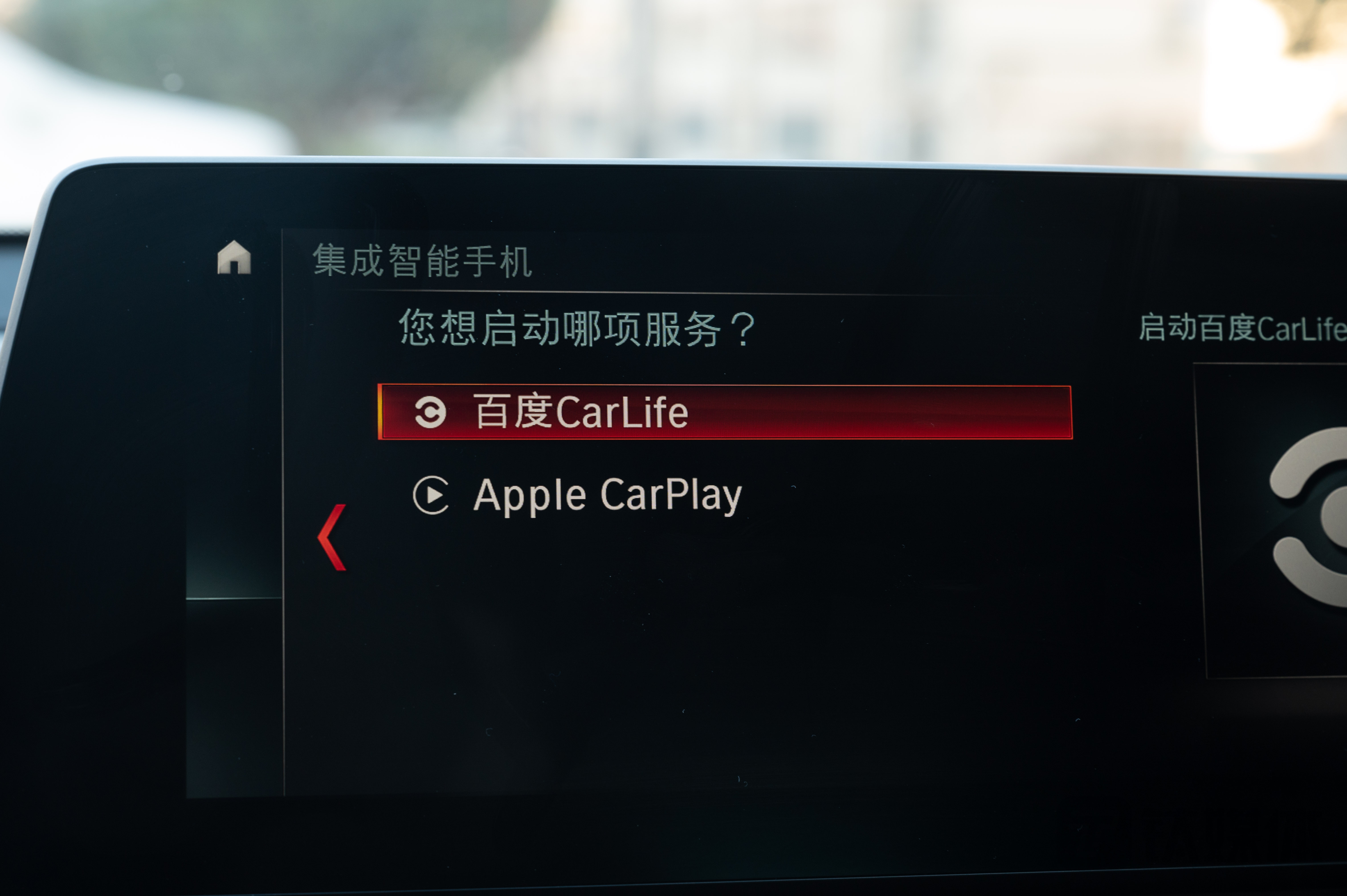 不过,宝马还是为用户提供了一套简单可行的解决方案,在车机系统中,它同时实现了对百度Carlife和苹果Carplay的支持。这样的措施也是有利有弊的,车主可以不用担心车机性能不足带来的体验流畅度问题,但也无法实现车内空间与个人隐私的完全隔离,并且目前安卓系统的Carlife还需要数据线连接,并不算十分地便利。