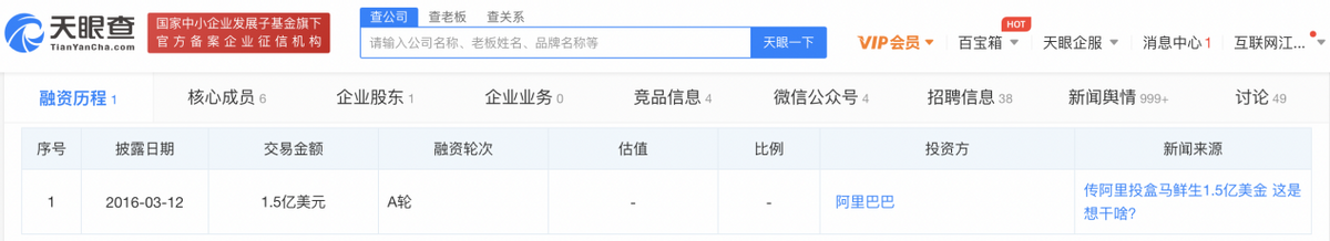 寻求独立融资可能也是阿里在二级市场寻求回报的一种方式,当下生鲜赛道全面盈利仍未实现,如果行业出现新的变数,盒马对于阿里来说可能就会成为资产负担。据天眼查App显示,2016年,阿里投资盒马1.5亿美元,之后,盒马似乎未进行新的融资。