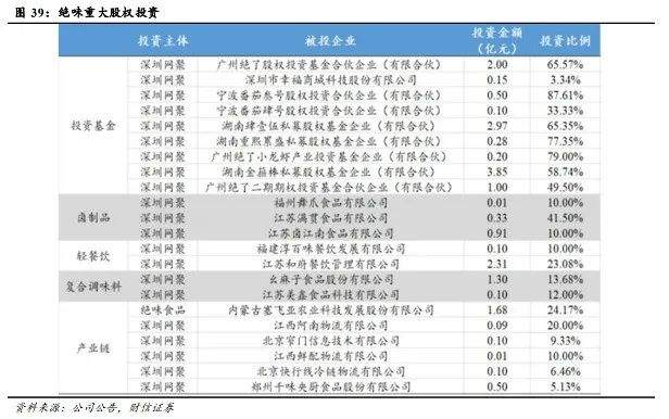 早在2014年,绝味食品就成立了深圳网聚资本,随后陆续成立绝了等多个基金,通过产业投资,跳出传统的卤味市场,建设“美食生态圈”。